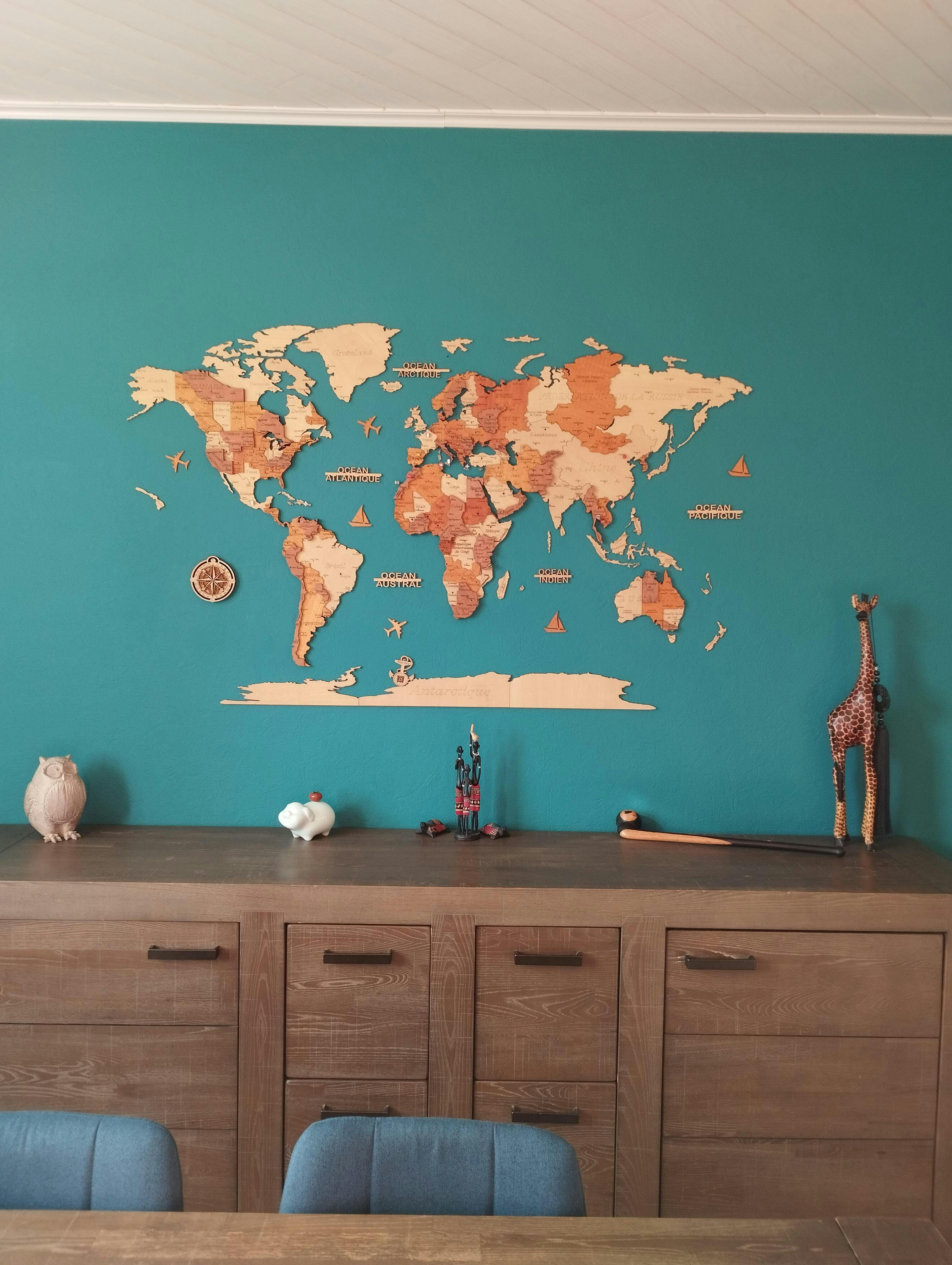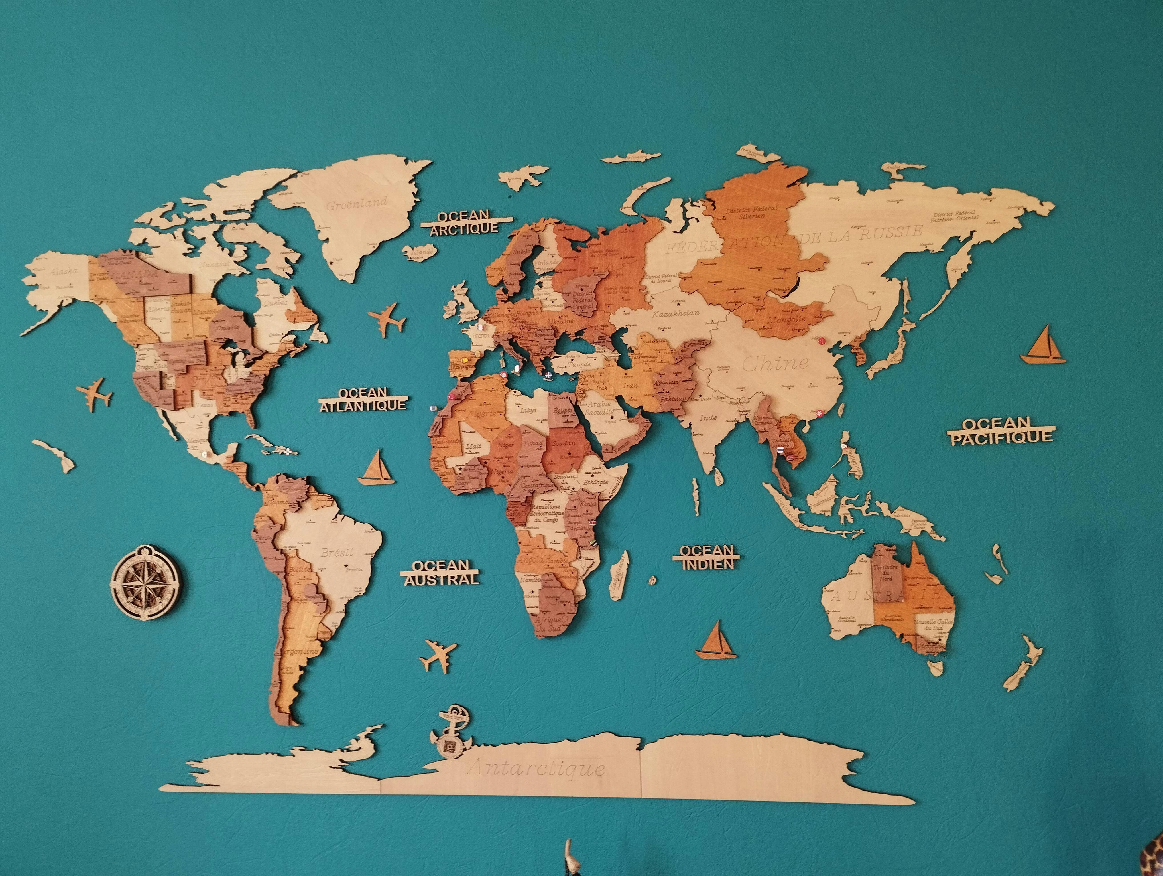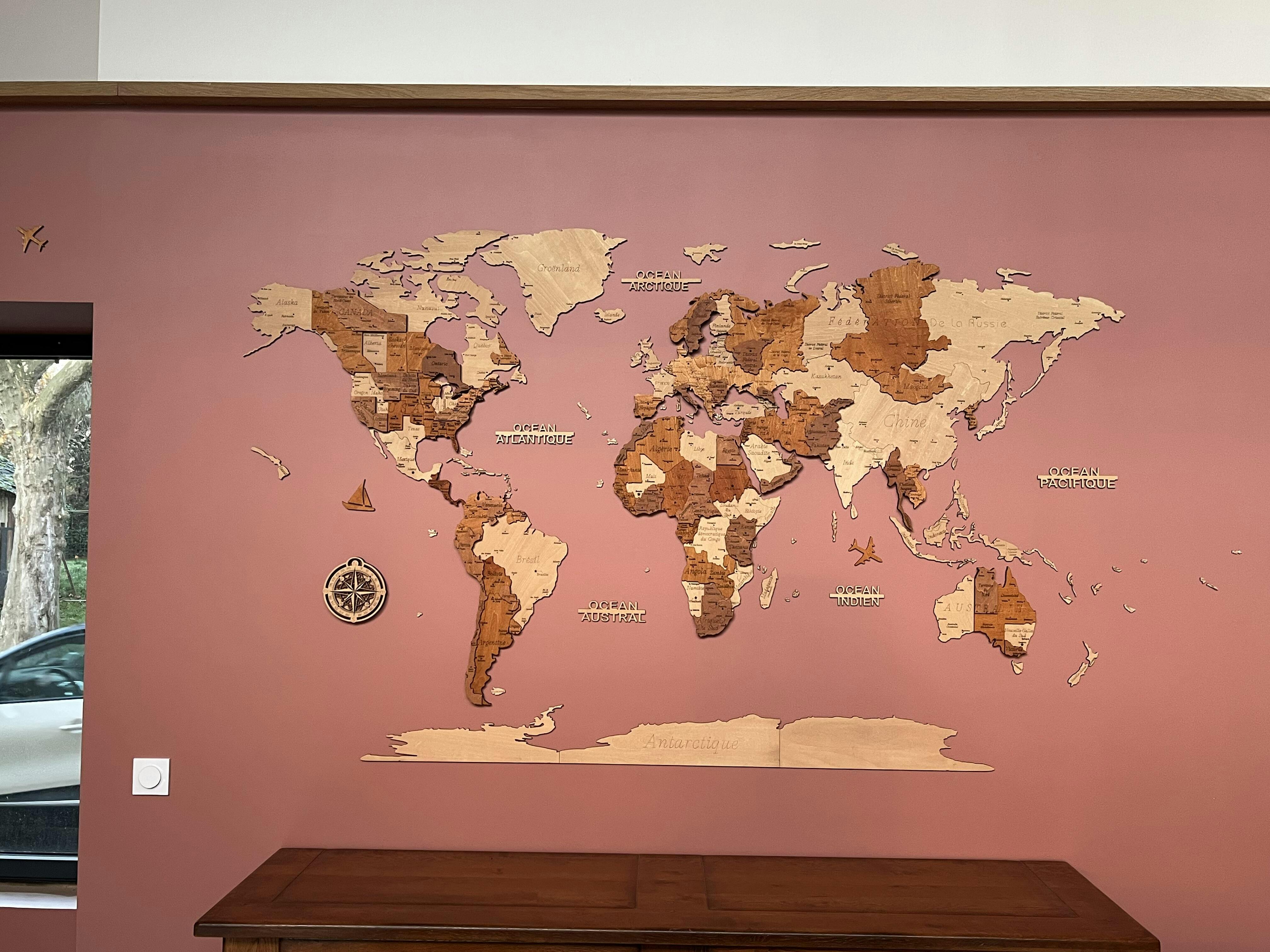 Découvrez nos cartes murales en bois, découpées et gravées avec précision dans notre atelier en France 🇫🇷.