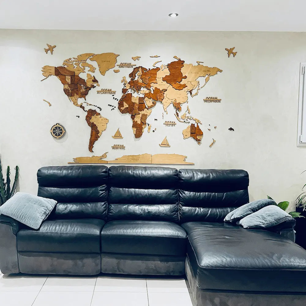 Carte du monde murale 3D en bois – gravure ultra-détaillée, fabrication française