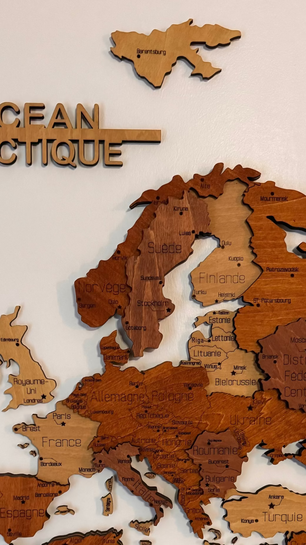 Plus qu’une simple décoration, cette carte du monde en bois est une véritable pièce maîtresse.