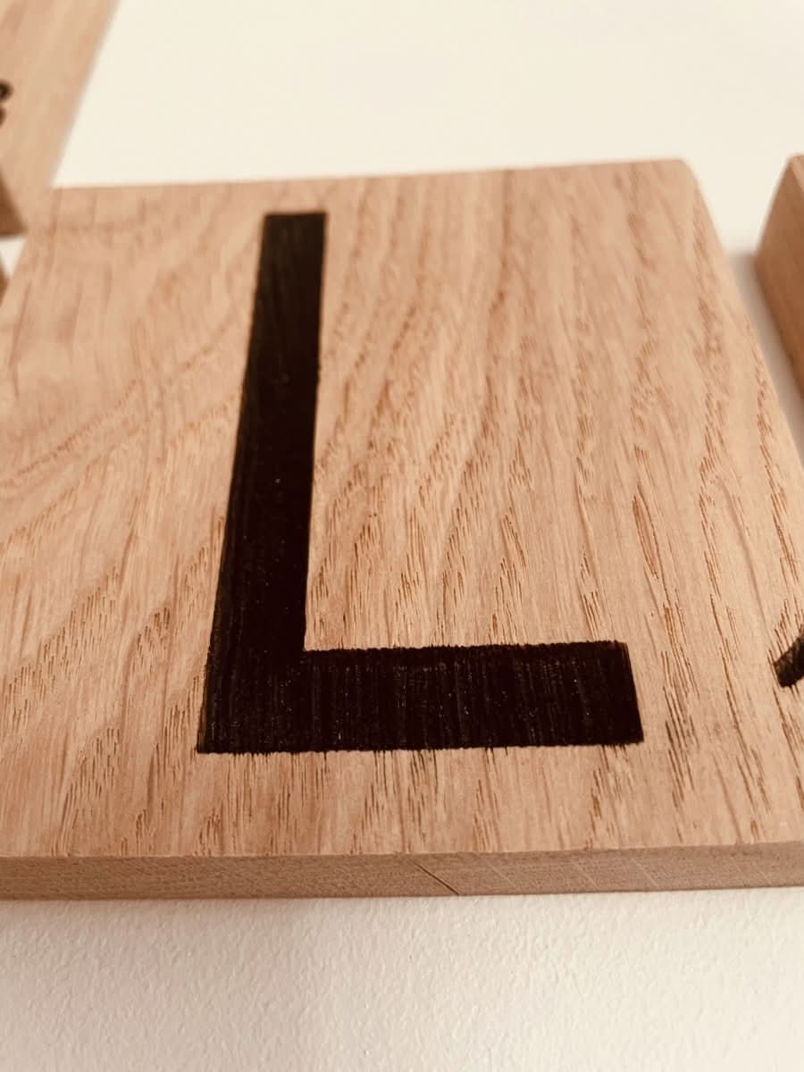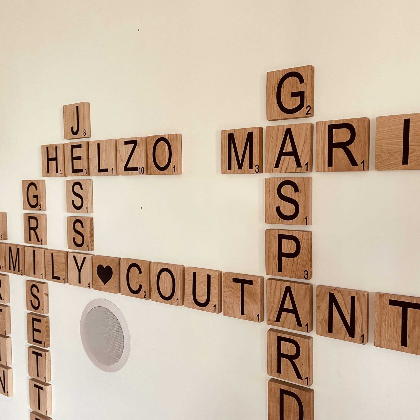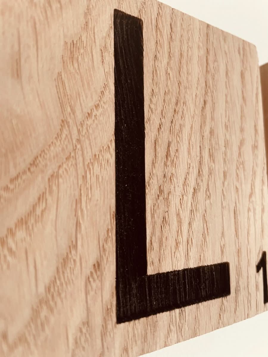 Apportez une touche authentique et chaleureuse à votre intérieur avec nos lettres Scrabble gravées dans du chêne massif.