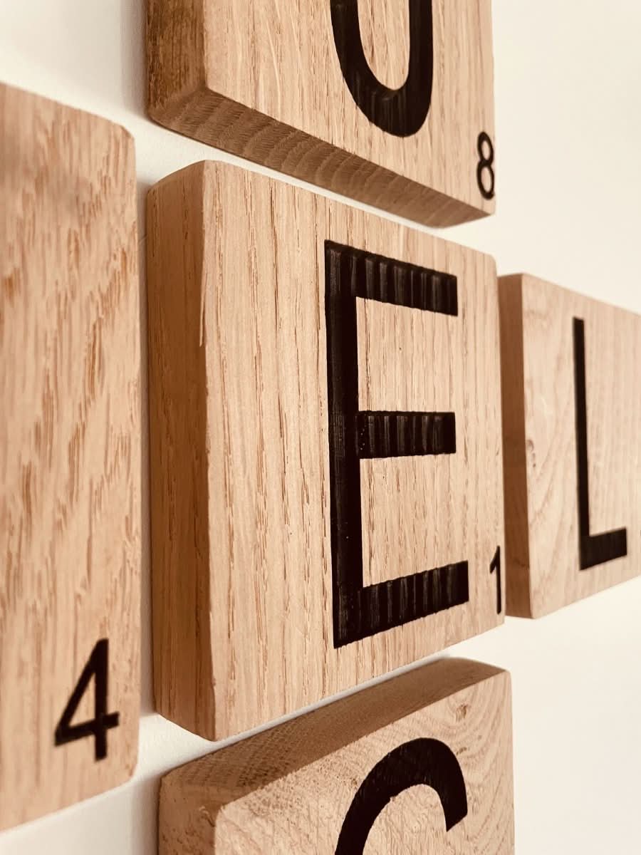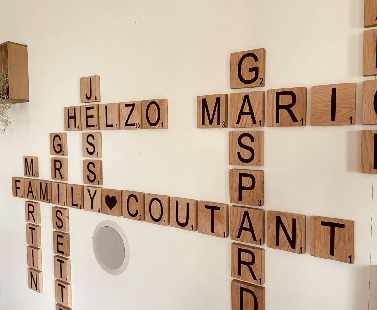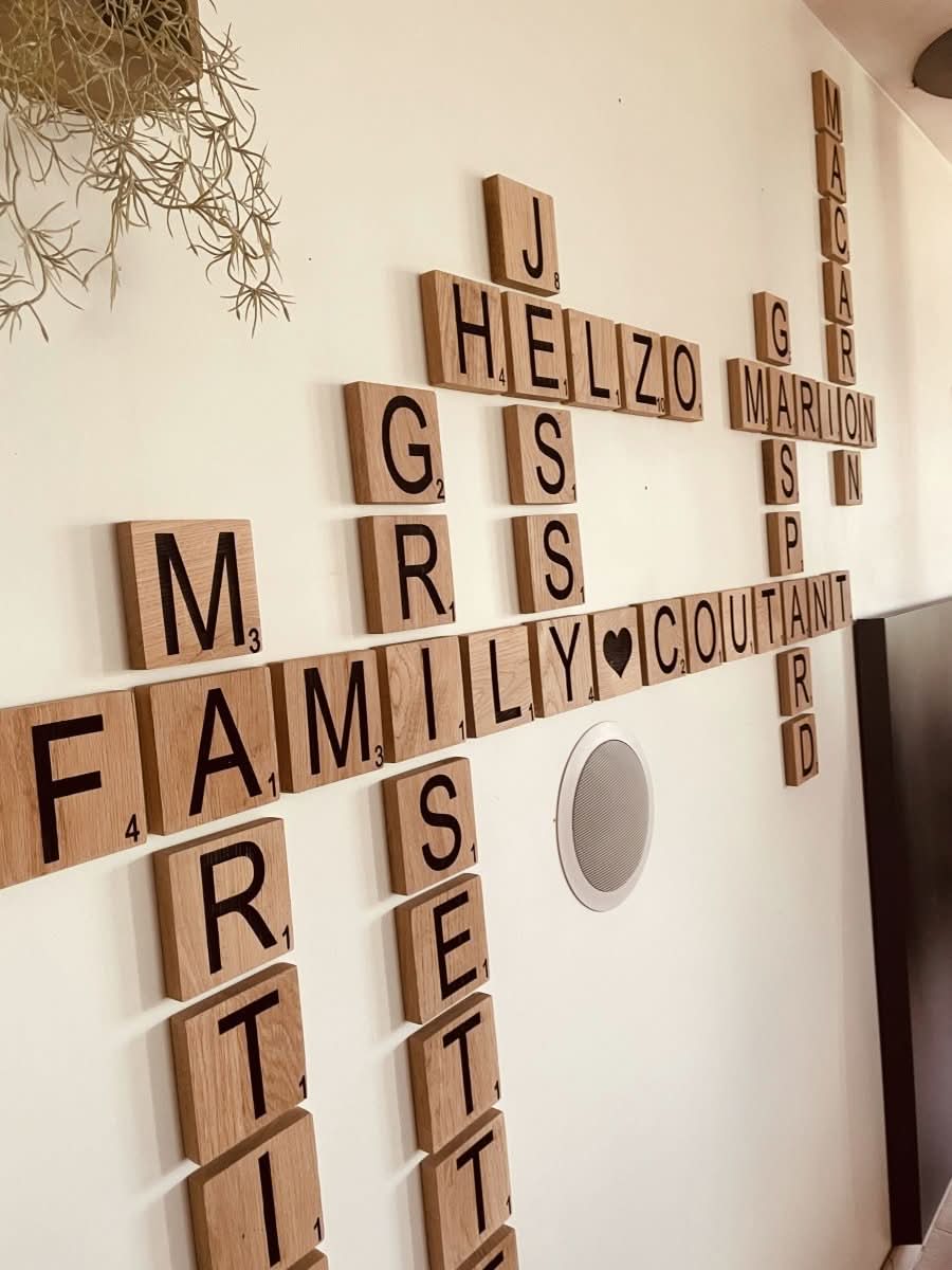Apportez une touche authentique et chaleureuse à votre intérieur avec nos lettres Scrabble gravées dans du chêne massif.
